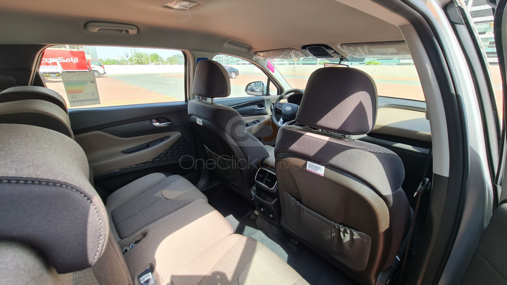 تتكوّن السيارة من الداخل من ثلاثة صفوف من المقاعد وتتسع لستة أو سبعة أفراد. بينما يتميز تصميمها الخارجي الجميل على مجموعة سيارات الدفع الرباعي. في حين تكتسب السيارة خاصية التسارع من المحرك V-6 بسعة 3.3 لتر وسرعة 290 حصان ومحرك تلقائي بست سرعات مما يمنحها نشاطًا مذهلاً، بينما تحتوي على ناقل حركة سلسل وخفيّ. تزوّد السيارة بعجلات دفع أمامي قياسي وعجلات دفع كلي اختياري. بينما يعتبر نظام الصوت من 12 سماعة اختياري، وكذلك باب خلفي لاسلكي. تشمل المزايا التقنية نظام أندرويد أوتو وخاصية الاتصال بتطبيق التحكم بلو لينك. اسأل شركة تأجير السيارة في حال كانت الإضافات كاملة في سيارة سانتا في أم لا.